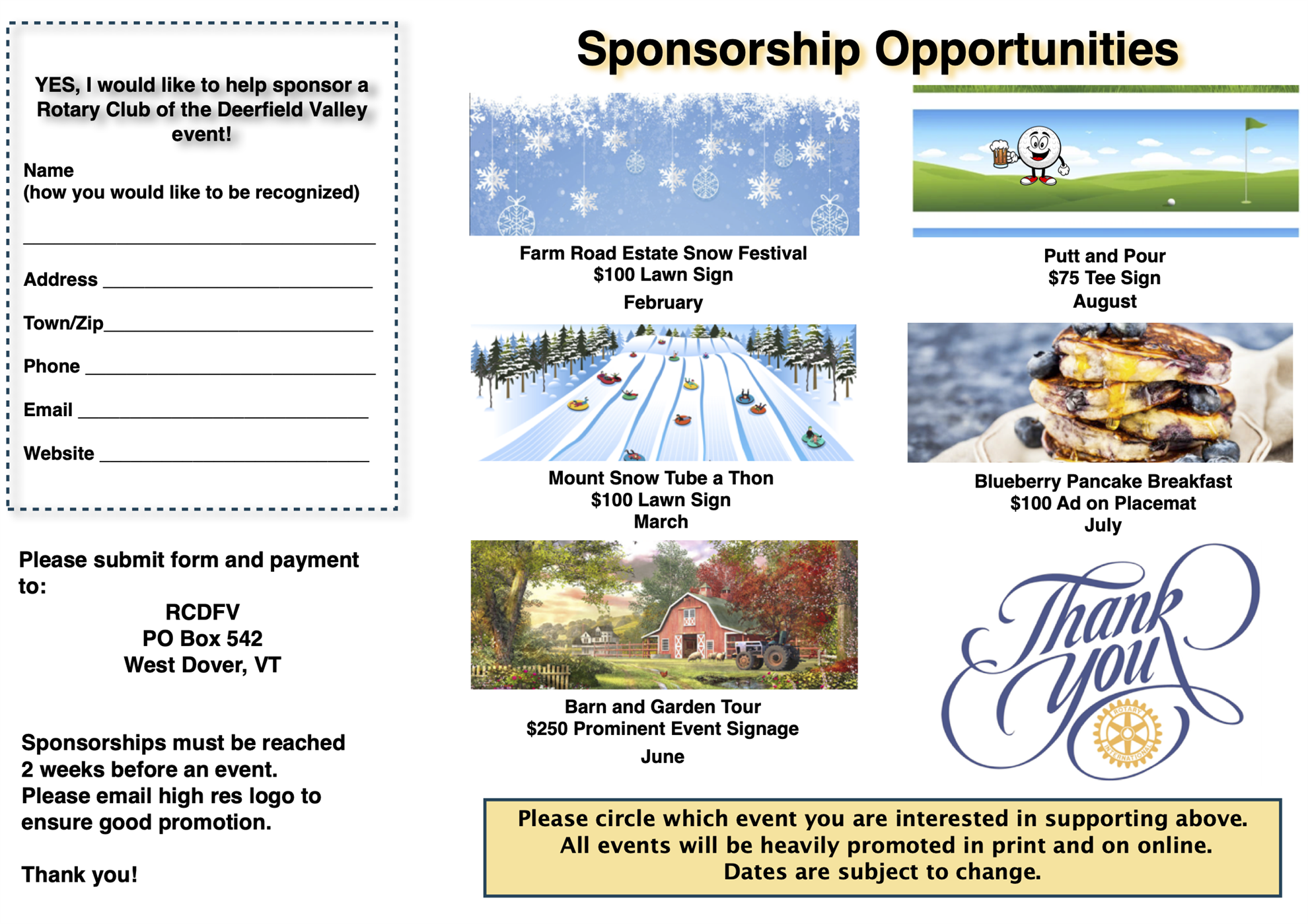 Download the form or fill out the form online. There are 2 different ways to access the sponsor form below. Or email RotaryDFV@gmail.com and we will be happy to assist you.